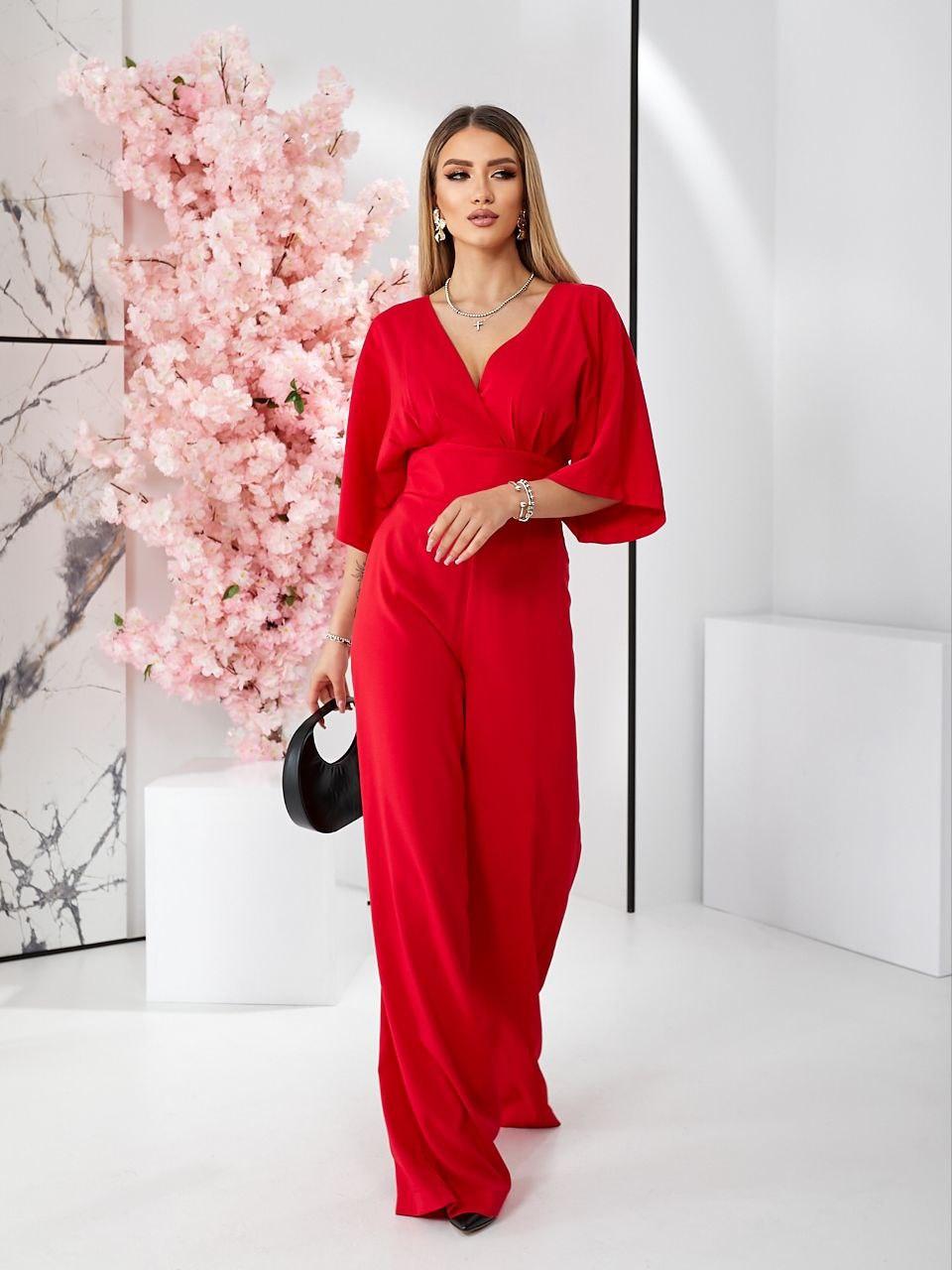 🔥 Стильний жіночий комбінезон із льону червоний